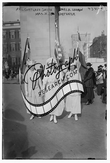 Mrs. Cortland Smith,Mrs. A. Lehman,Mrs. H.S. Carpenter,women,flags,Bain News
