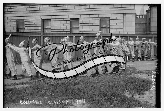 Columbia Class,1909,costumes,lines,groups,men,graduates,portraits,buildings