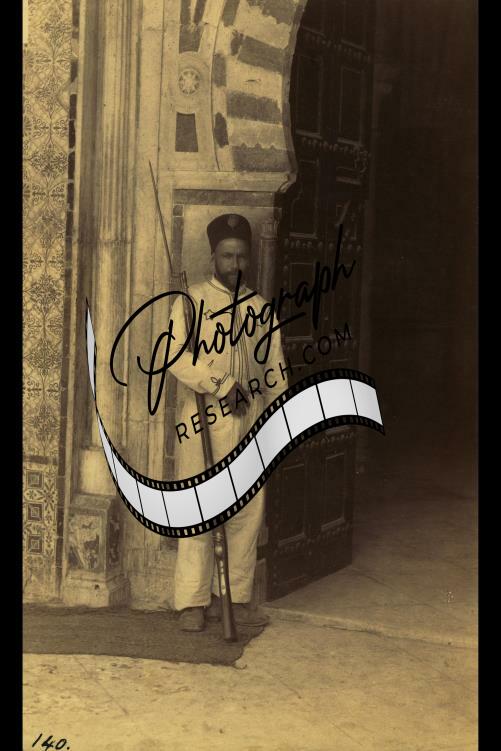 Soldier standing guard,man holding rifle,bayonet,Tunisia,1860-1900,Tunis
