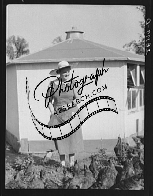 Title: Mrs. Maxwell feeding chickens. Jasper County, Iowa
