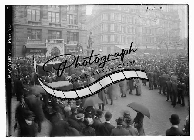 I.W.W. Meeting,Park Row,Industrial Workers of the World,1910-1915,autos,crowd