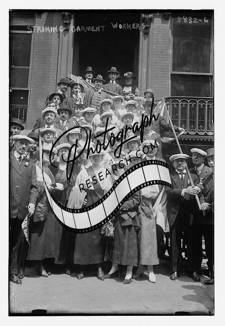 Striking Garment Workers,men and women posed on steps,employment,Bain News