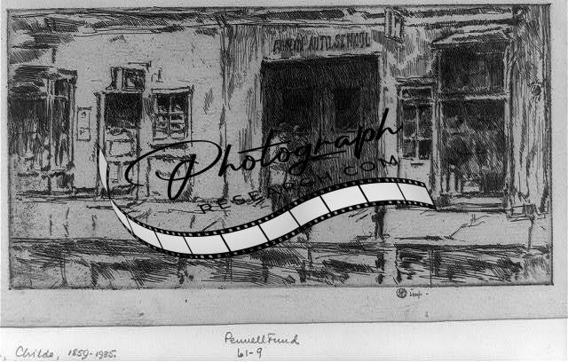 The auto school,Building,Education,People,Automotive,Childe Hassam,1916