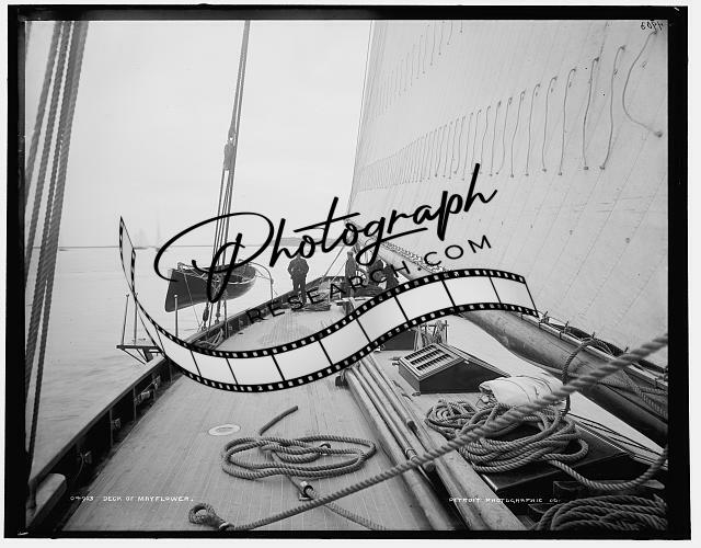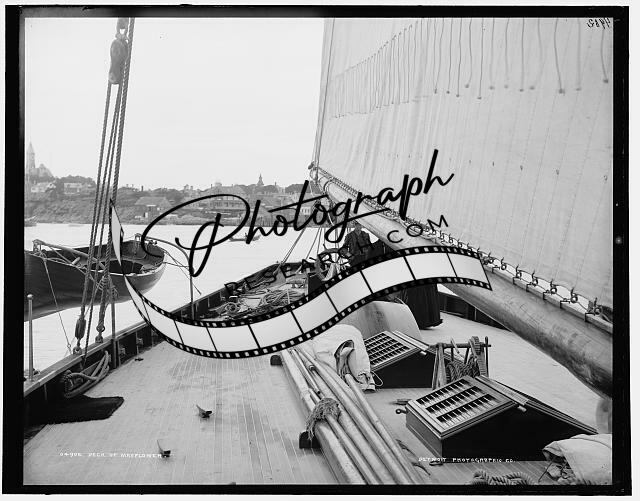 Deck,Mayflower,boats,sloops,yachts,water vessels,sails,Detroit Publishing,1886