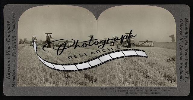 Machines--combined harvesters cutting, threshing, and sacking wheat, Ciudad Obre