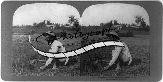 Philippine Islands: A modern Filipino mowing-machine,c1902,man using sickle