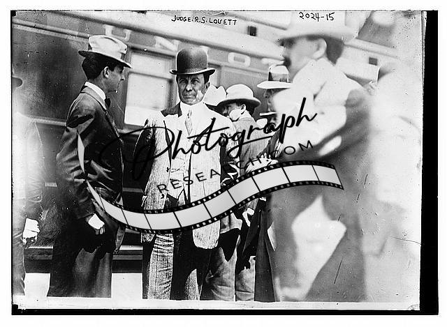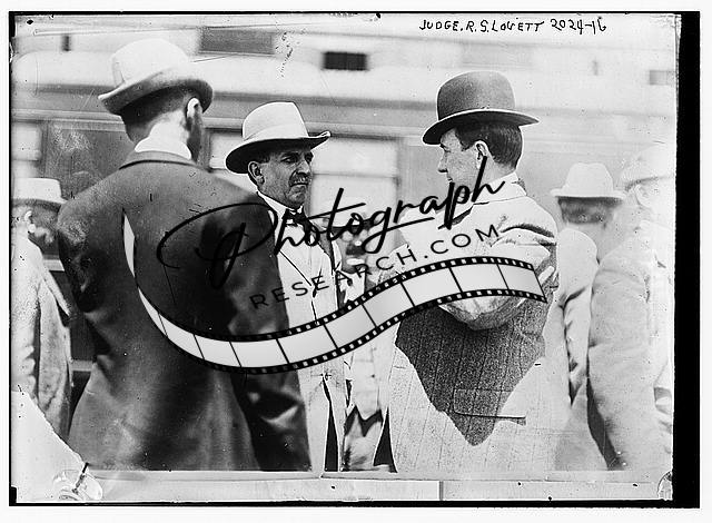 Judge R.S. Louett;view of Louett with a group of men in front of train,Bain News