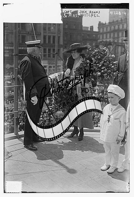 Captain & Mrs. Mitchel,Jack Adams,little boy,child,sailor outfit,woman,flowers