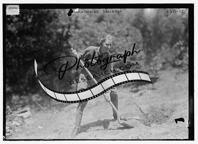 Katherine Dahlgren,girl shoveling in wooded area,Bain News Service