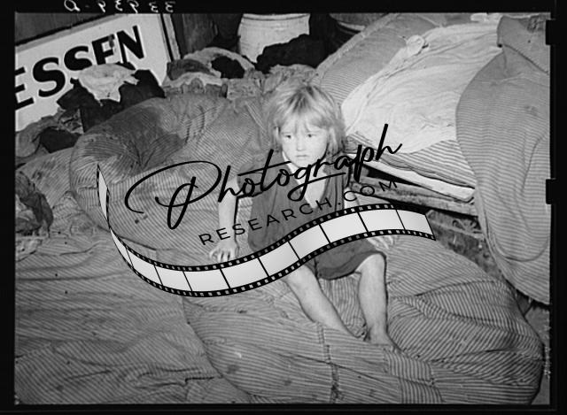 Title: Baby with his bottle in shack home near Mays Avenue camp. Oklahoma City, Oklahoma. See general caption no. 21