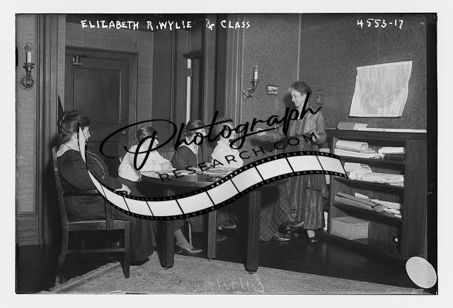 Elizabeth R. Wylie & class,women gathered around table,Bain News Service