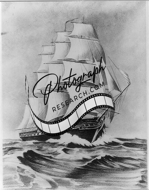 U.S.S. Constitution,starboard,full sail,ship,c1933,wave