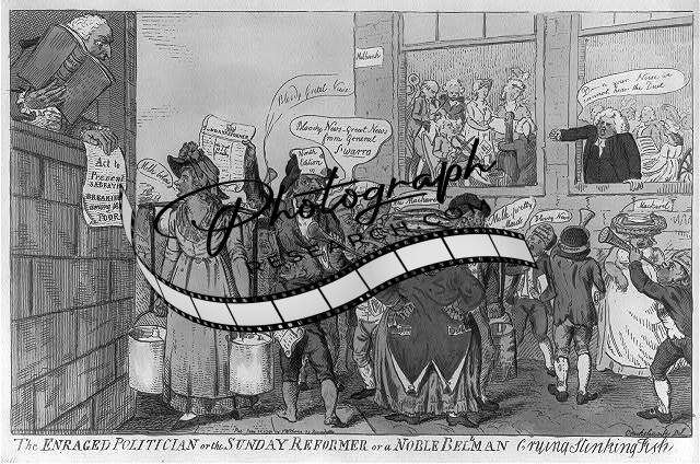 Enraged politican or the Sunday Reformer,1799,British Cartoon,Sunday,Blue Laws