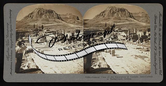 General view of the excavation at Corinth,acro-Corinth in background,Greece
