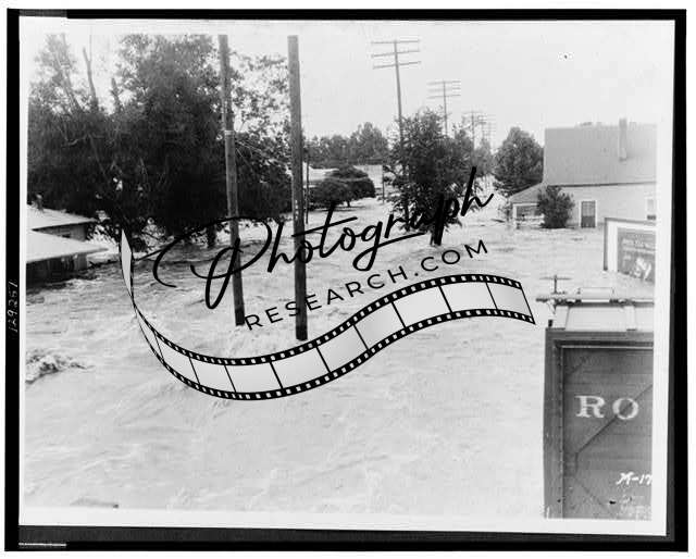 Title: [Area of Melville underwater except for utility pole and sign with arrow pointing to hospital]