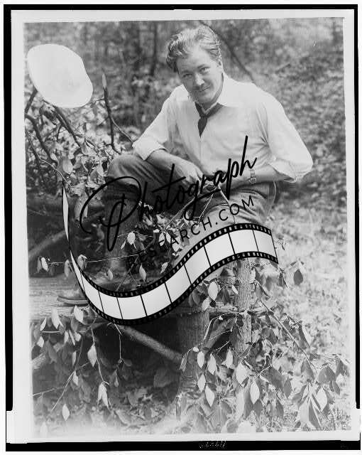 John Charles Thomas,1891-1960,singer,sitting,log bench,whittling a small branch