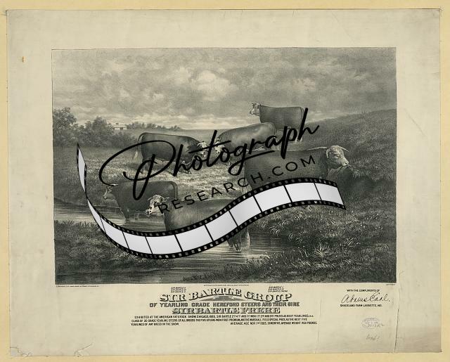 Sir Bartle group of yearling grade hereford steers,their sire,May 1,c1886