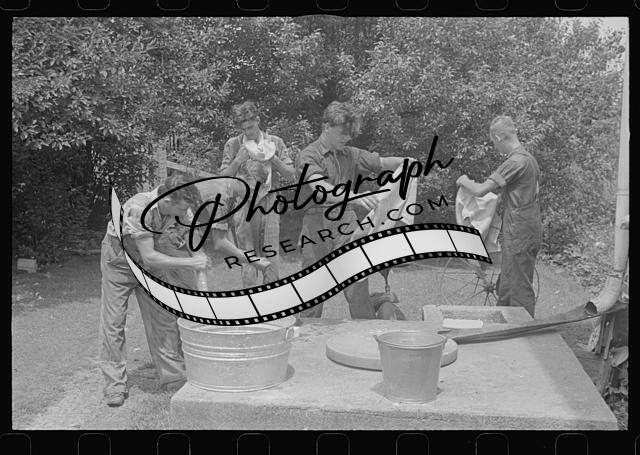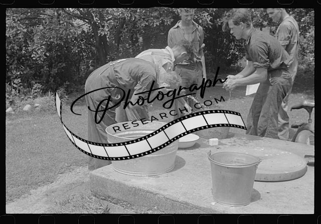 Getting ready for dinner during wheat harvest,central Ohio,OH,August 1938,FSA,2