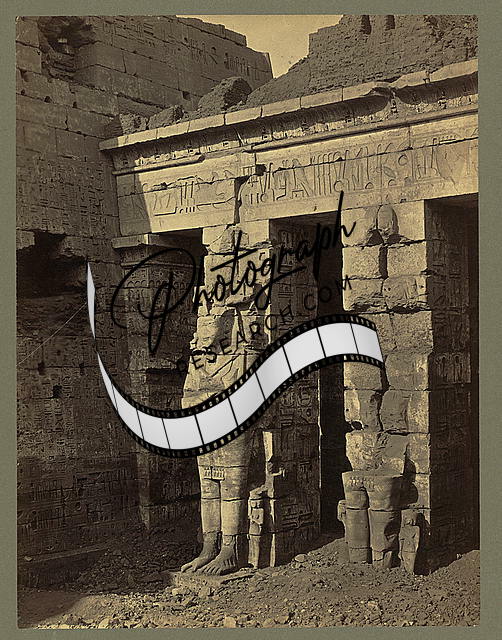 Medinet Habou,Temple Entrance,Columns,Statue,Egpyt,Francis Frith,1856-1860