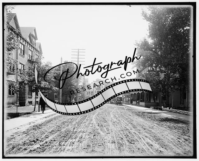 Street view,looking west,roads,buildings,carriages,Saranac Lake,New York,c1906
