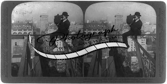 Reproduction,Photographing New York City,Fifth Avenue,Camera,Man on Beam,c1907