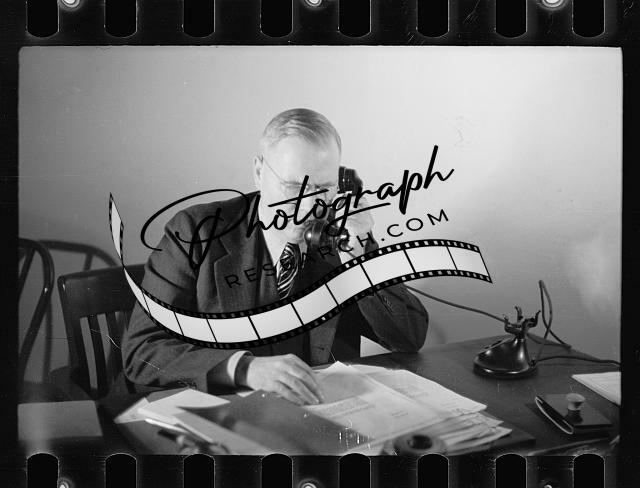 Men,offices,desks,paperwork,telephones,portrait photograph,1935
