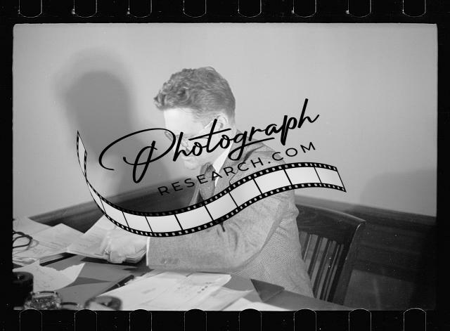 Men,offices,desks,tables,paperwork,portrait photographs,1935 23