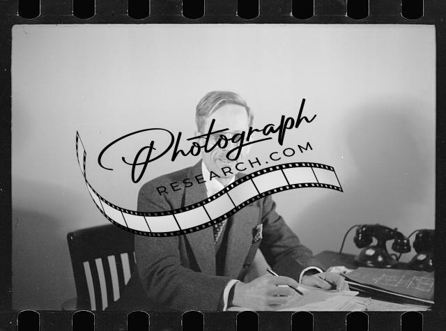 Men,offices,desks,tables,paperwork,portrait photographs,1935 10