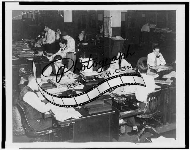 Men working in the newsroom of The New York World-Telegram newspaper,1941,NY