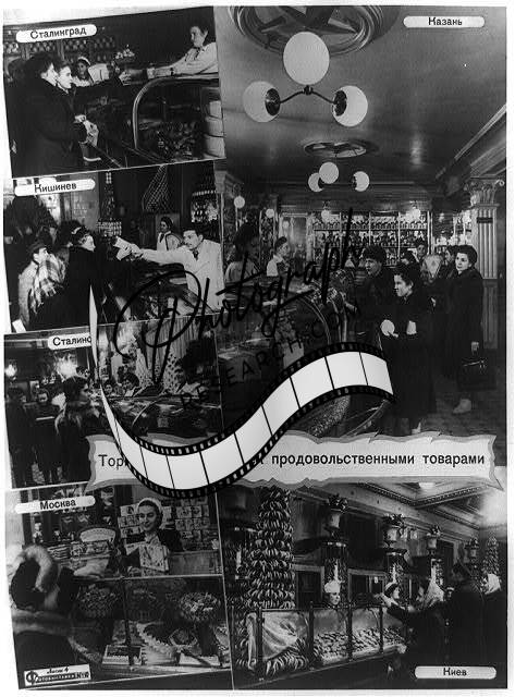 People making food purchases,shopping,shops,six Russian cities,Moscow,Kiev,1948