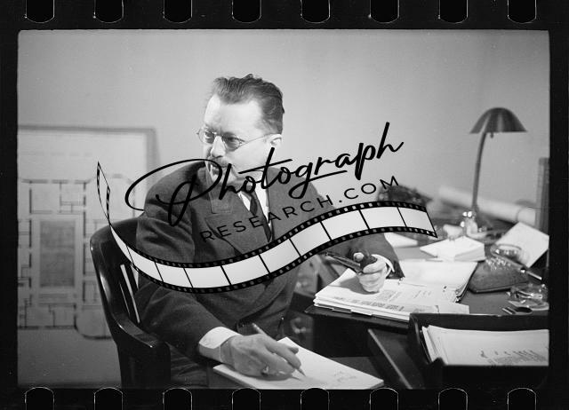 Men,workers,offices,desks,tables,paperwork,smoking pipes,1935 2