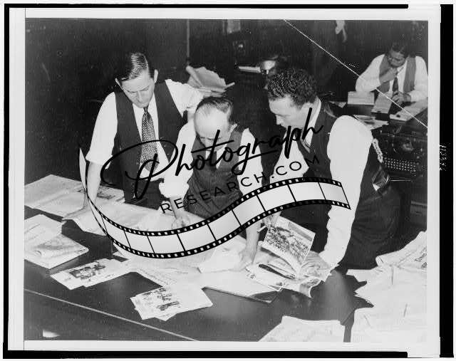 Sports editors planning news story around photographs,July 11,1935,New York,NY