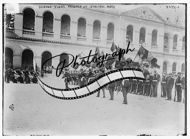 German Flags received at Invalides,Paris,France,military,men,flags,drummers