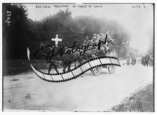 Red Cross Transport in Forest of Laigle,horse-drawn carraige,men,Bain News