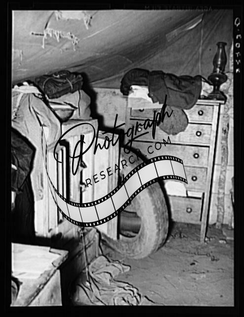 Title: Migrant worker on bed in tent home. Mercedes, Texas. See 32108-D