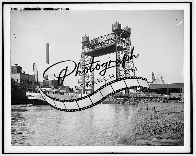Halstead Street lift bridge,vertical,cargo ships,River,Chicago,Illinois,IL,1900