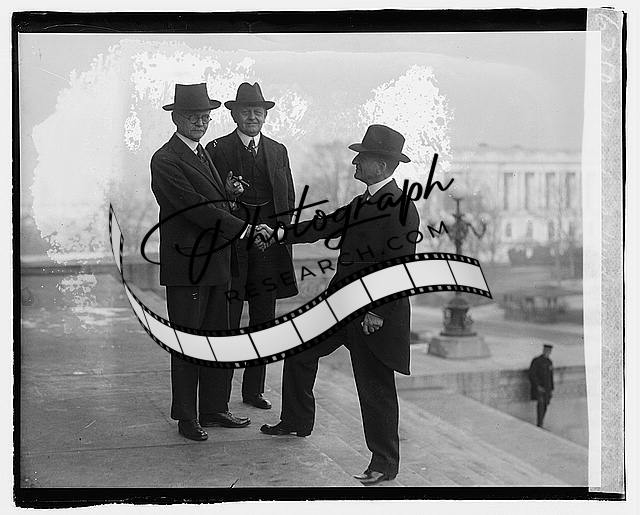 Caption from caption list: Secty. Houston and the New Secty. of Agriculture Edwin T Meredith photographed at the Agricultural Dept. today.