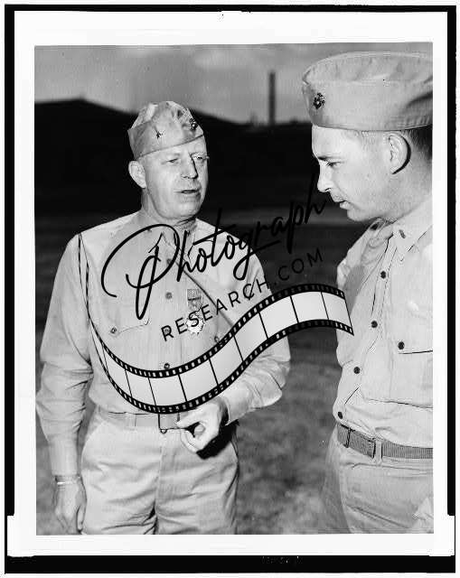 Merritt Austin Edson,microphone,outdoor stand,uniform,Red Mike,General,1947