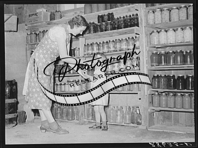 Title: Mrs. H.H. Poland, wife of rehabilitation client, with preserved food. Mesa County, Colorado
