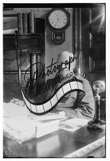 Colonel William G. Haan,desk,clock,Bain News Service,telephone