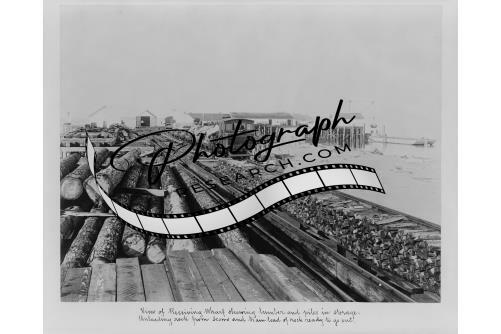 Coos Bay,Oregon,OR,Receiving Wharf,Lumber Logs,Scows,Train,Pier,c1890,Railroad