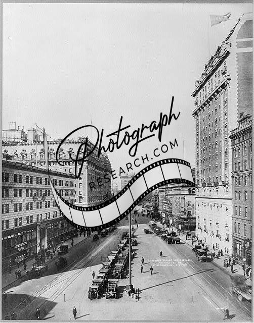 Greeley Square North,Elevated Railroad,New York City,NYC,c1933,Trolley Cars