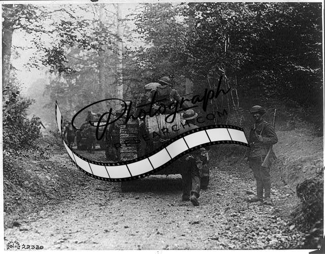 American Armored Column moving along wooded road,France,WWI,World War I,Army