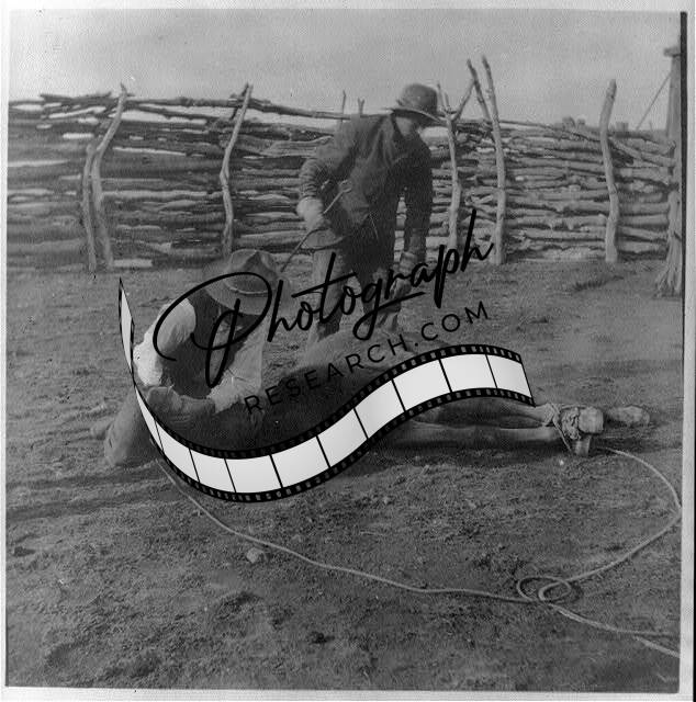 Branding horse,men,cowboys,ranch,Southwest US,1901