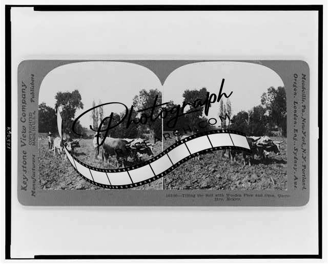 Tilling the soil,wooden plow,oxen,Queretaro,Mexico,c1919,Farming,Reproduction