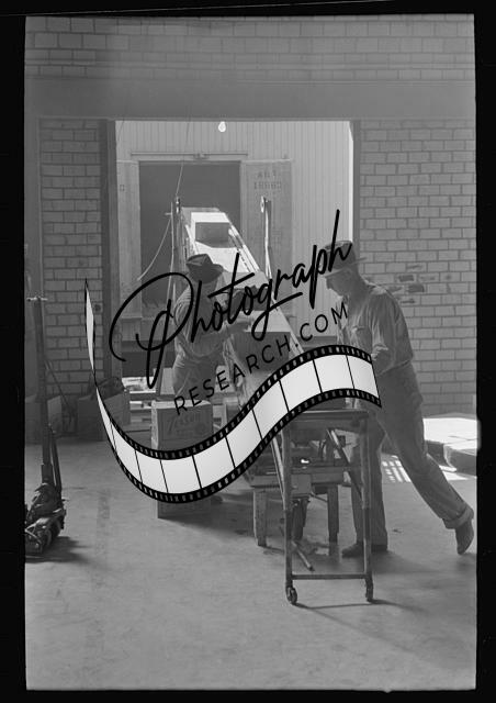 Conveyor loading direct from cannery into boxcar,Weslaco,Texas,TX,FSA,1939,1