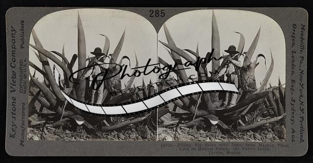 Filling pig skins with juice form maguey plant, used in making puique, the nativ
