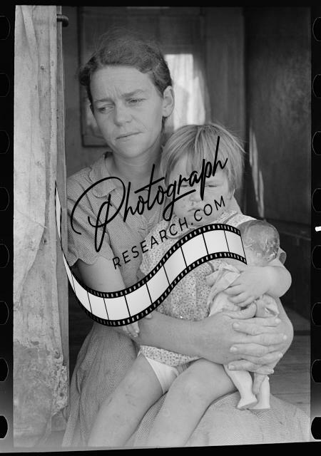 Migrant mother with daughter in door of trailer home near Weslaco,Texas,TX