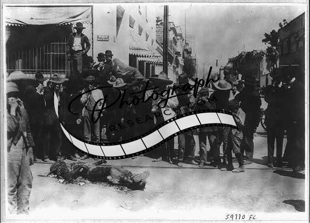 Mexico City - Feb. 1913: group of civilians holding their noses beside charred corpse