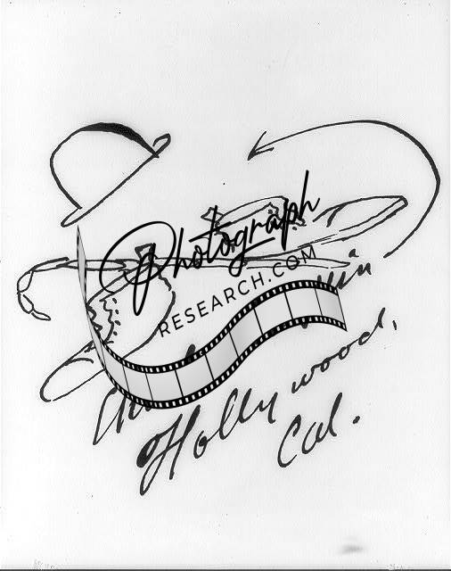 Charles Spencer Chaplin, 1889- . "a drawing of his hat, cane, and boots, with autograph"